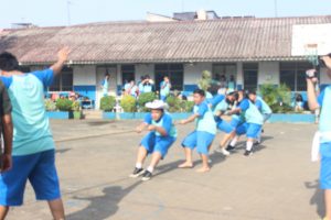 Setiap perwakilan dari tiap kelas menyiapkan anggotanya, setiap perwakilan kelas berlomba untuk menjadi pemenang, setiap murid mendukung tim yang mereka anggap akan menang hingga akhirnya lomba tarik tambang selesai diperoleh juara yaitu: